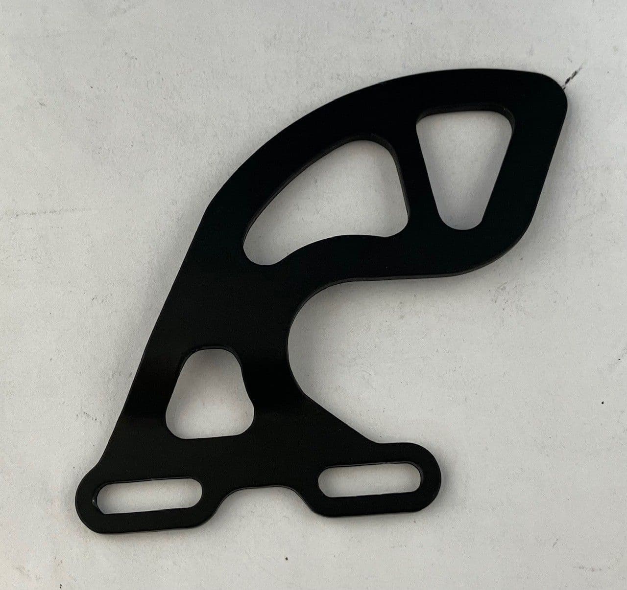 Left hand heel guard. Black anodised finish.